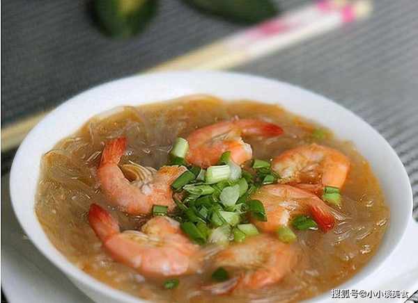 材料:鲜虾仁200克,粉丝100克,盐2茶匙,鲜酱油0.5汤匙,小葱,大蒜