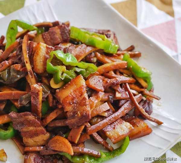 原料:五花肉、辣椒、豆腐干、盐、料酒、味精、六月鲜