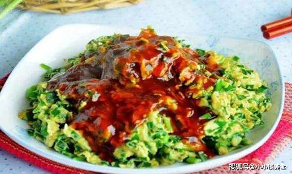 11、将糖醋汁淋在韭菜和鸡蛋上,边吃边拌匀。