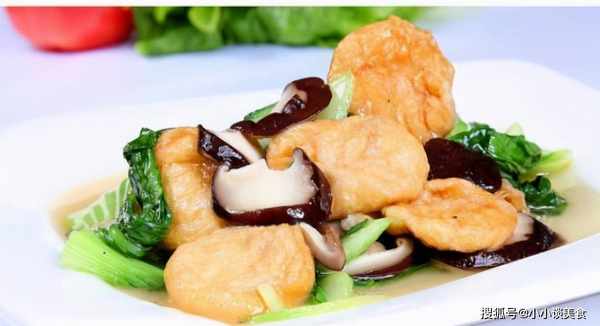3、油锅放一勺油,将青菜、面筋、香菇倒入火中翻炒几下,在大碗中倒入清水,加入适量的糖、盐和鸡精,边搅拌边炒匀,盖上锅盖焖一会。等水快干了再上菜。