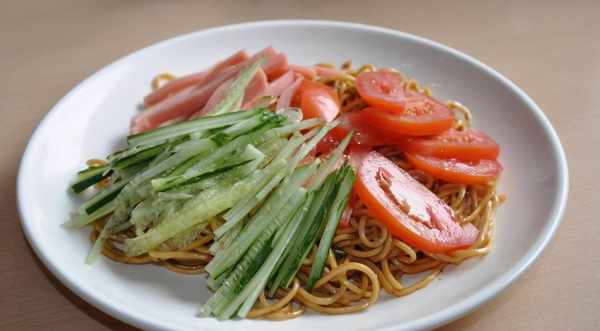 2、将意大利面放入开水锅中,加入两滴油,加盐,煮沸沥干,放入碗中用冷水浸泡,然后沥干沥干。
