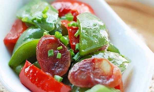 热锅放油,加入蒜末爆香,再加入胡椒粉和香肠炒至钟熟。