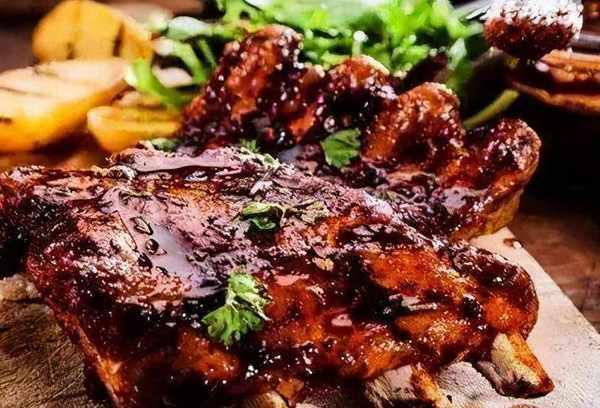 3.将猪骨取出,放入烤箱260度。在这个季节,经常涂上酱汁,直到它变成红色和烧焦。