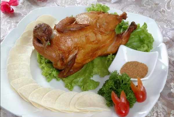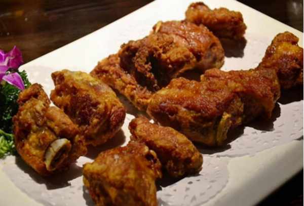 2、将肉鸡的肚皮切开,抹上黑酱油,上色后放入油锅中炸至金黄色,捞出放入油锅中放入蒜头炒至。夏天。金黄色