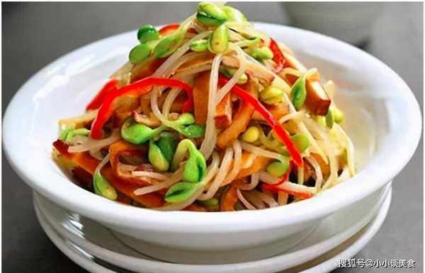 原料:黄豆芽140克,薄香干3片,红辣椒1个,大蒜3瓣。生抽11/2汤匙,糖1茶匙。