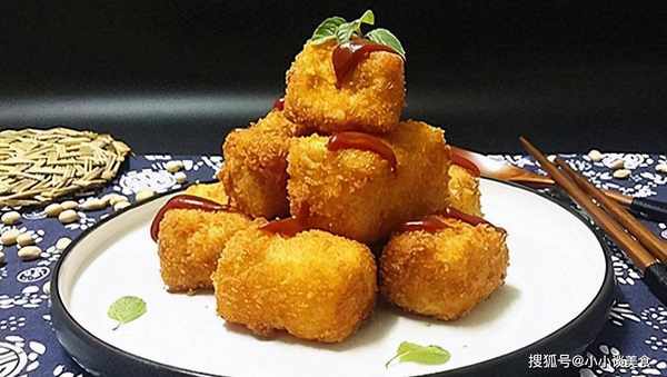 4.准备淀粉。炸豆腐之前,先把豆腐蘸上淀粉。