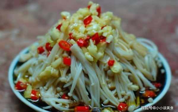 原料:金针菇、香菜、小葱、蒜头、白糖、白醋、香油。炖鱼腿,油,辣椒