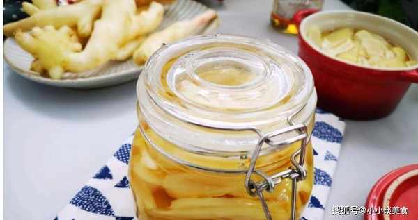 3、准备一个煮锅,放入冰糖,加入适量的水和白醋,转小火至溶化,倒入容器中待用。4.准备一个无油无盐的罐子,把腌好的姜挤进去,然后倒入煮好的汁,盖住姜片的表面,然后放入冰箱冷藏。2小时,香脆开胃,凉爽滋润,赶紧尝尝。