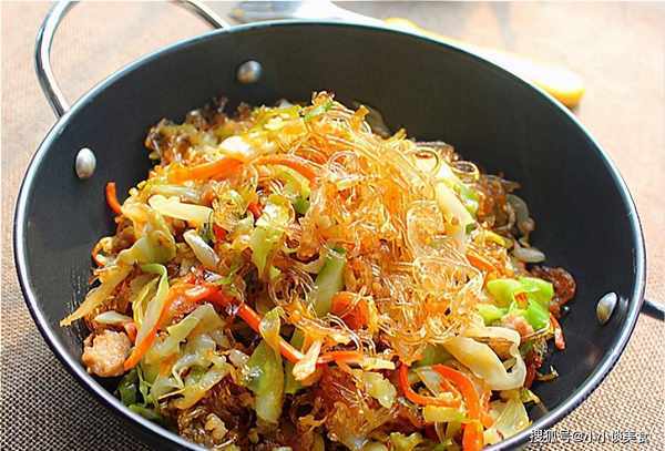 所需材料:粉丝3条,白菜半根,胡萝卜半根,蒜末适量,酱油适量,盐适量,糖少许,胡椒粉适量,香菇3朵。