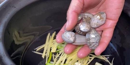 6、砂锅底部放上葱姜打底,再放几个花甲