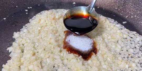 5、这时间可以准备点自己喜欢的菜,我洗了一些娃娃菜,煎了几块豆腐,准备一些大蒜沫,先把蒜末炒香,炒出蒜香后加入一勺蚝油,少许的盐,白糖,一勺生抽炒至蒜末上色,盛出来备用