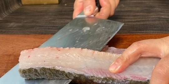 2、还有人说鱼肉中的白线是鱼腥线,也有人说是鱼的平衡线,我这里也把它抽出来了,鱼头鱼尾鱼骨都切掉,可以留着炖汤,今天只用鱼肉。