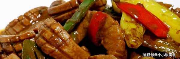 步骤:1.将鸭肠从沸水中取出15秒,切成3厘米的片。切碎的青椒
