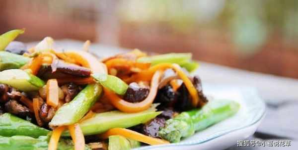 4、蒜切片。5、锅烧热,倒入少许橄榄油,油热后放入蒜片爆香;加入胡萝卜和香菇,翻炒片刻;加入芦笋、适量盐,略煮;加少许水,继续煮,芦笋慢慢变翠绿,水慢慢收干,加少许干贝,搅拌均匀,大功告成,出锅