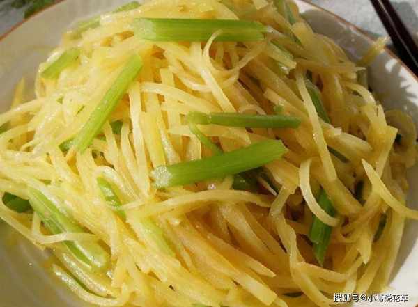 1、土豆丝先用开水焯一下,然后过冷水,过水后用酱油、盐、味精、醋调成汁。2、锅内烧热花生油,放入花椒炒出香味,捞出,放入土豆条和红辣椒条,炸一会,加入拌好的汁,撒上葱花翻炒几下次。