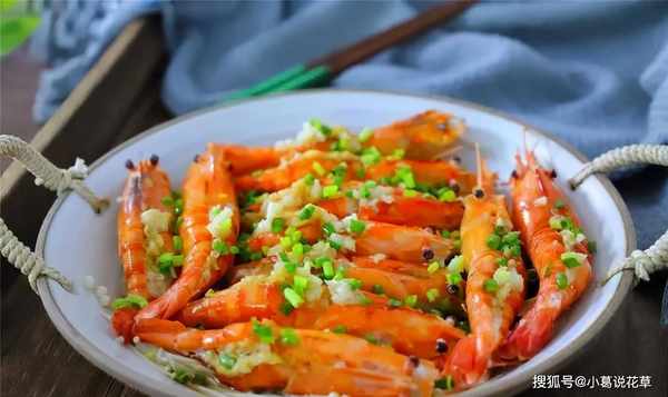 材料:大虾10只、金针菇200克、大蒜1颗、蒸鱼、盐、小葱
