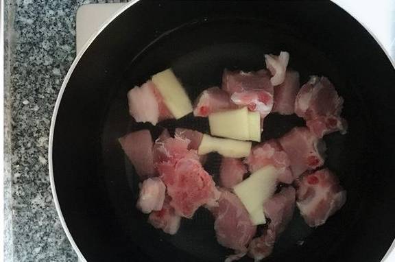 1、排骨洗净冷水下锅,加入少许姜片、料酒1汤匙,大火烧开,撇去漂浮物,转中火熬煮10分钟后捞出(可留出适量高汤,焖煮时用);