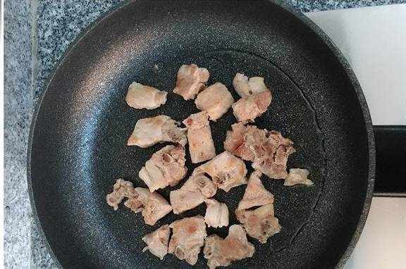 4、锅内加入少许油,烧热至七八成热下排骨,两面翻煎;