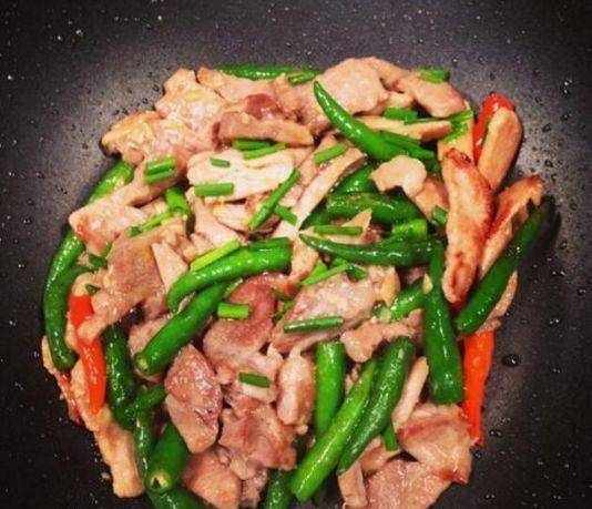 原料:牛肉丝150克,大蒜3~4瓣,红辣椒1个,姜末适量。