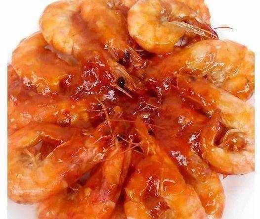 材料:虾仁250克,大蒜半头,山茶油适量,甜辣酱适量