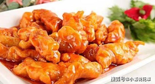 6。将番茄酱、白醋和糖混合成酱汁。锅内留少许底油烧热,倒入调味汁和蒜末,小火加热至沸腾,倒入炸好的里脊肉,拌匀后起锅。