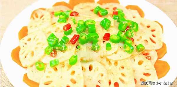6、藕片凉透后,查清水份,放入盆中。加入酱汁,拌匀,腌10分钟。趁着这个时间,我们把胡萝卜片一一摆在盘子里,再把腌好的藕片放在上面,再倒入青红椒圈,一份美味的凉拌藕片就做好了。