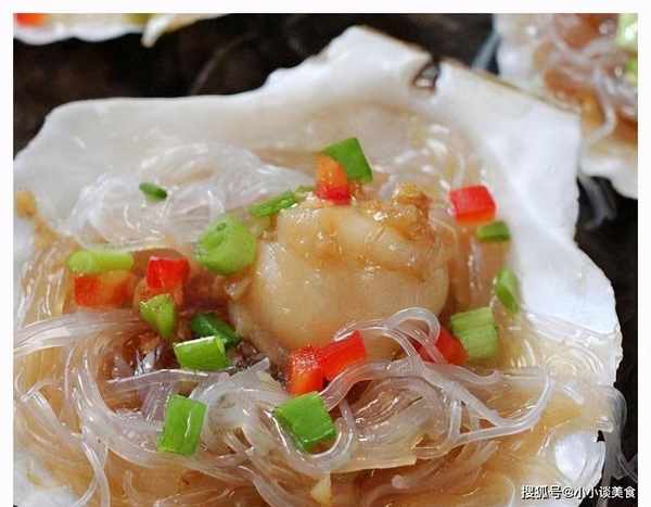 2、炒好的蒜末和另一半生蒜末加入少许盐和鸡精;将洗净的扇贝用刀切开,面条切成小块,铺在带壳里,撒少许细盐。