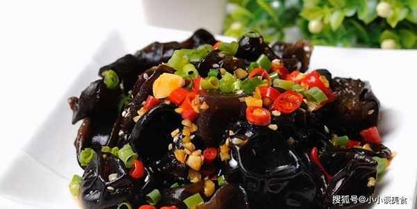 1.黑蘑菇预先浸泡,烧开水,加入泡发好的黑蘑菇,焯水半分钟,立即捞出,然后泡在冰水中待用。
