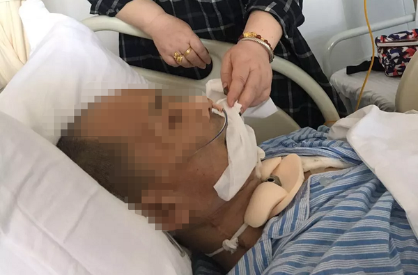 一年後,金思駿的腫瘤復發了,手術時氣管被切開,術後徹底不能動彈,每天只能躺在病床上,靠輸送營養液維持生命。金思駿的妻子表示,丈夫嚼檳榔已經有相當長的時間,最多一天要嚼五六包。