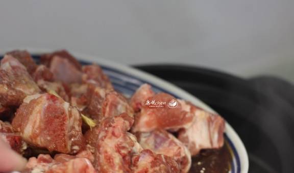2排骨用生抽、料酒、生粉拌匀,腌制片刻