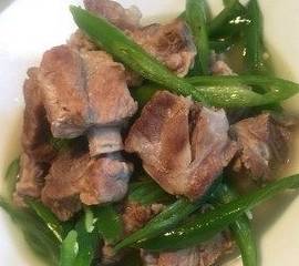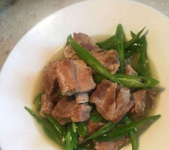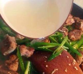 炒一会之后加入炖排骨的汤然后煮几分钟到辣椒软了