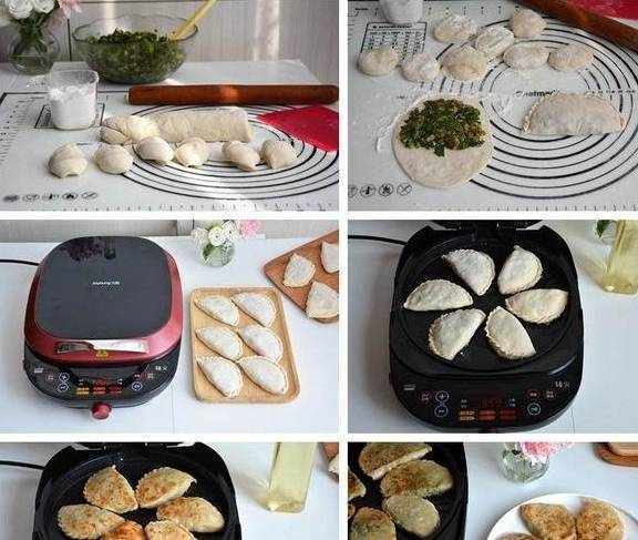 7.12个合子和馅料都用完了,电饼铛通电,选择“馅饼/披萨”程序,上下烤盘大火力加热,时间暂定12分钟;