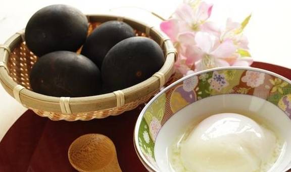 温泉蛋是在温泉度假区的早餐经常出现。享用温泉蛋的时候,你可以拌酱油或可以在箱根大涌谷的伴手礼店找到它们。日本温泉胜地箱根,据说是温泉蛋的始创者。在日本全国,只有在日本箱根的大涌谷才能够找到黑色的温泉蛋。因为这些蛋不能够被冷藏,所以要在加热之后立即出售,也不能运送到其他地区贩卖。据说,吃下一颗黑色温泉蛋会增加7年的寿命呢!