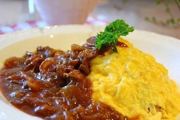 如果你是日本牛肉和日式咖哩的粉丝,我建议您尝试一下「蛋包牛肉烩饭」(オムハヤシライス)。日式牛肉烩饭是用蘑菇、番茄酱和牛肉,再加入洋葱和番茄的酱汁做成的烩饭。蛋包牛肉烩饭的做法其实就是用日式牛肉烩饭代替蛋包饭中的炒饭。