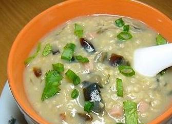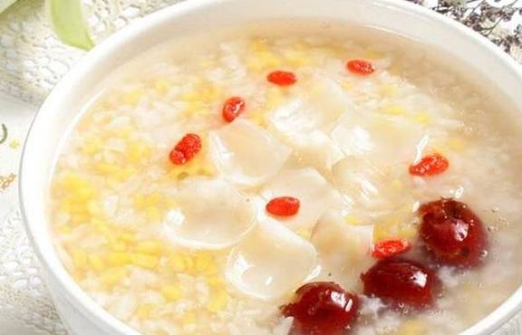 做法:枸杞和菊花洗净,放入锅中,加入500毫升的水烧开,继续加热10分钟,煎成汤,粳米淘洗干净,放入煎好的汤里,一同煎好粥即可。