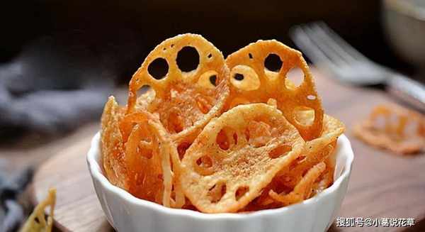 4、锅内放植物油,烧热后逐个放入莲藕片,炸成金黄色即可;
