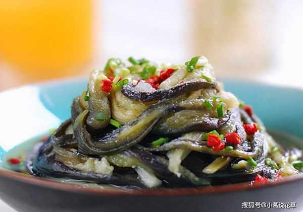 食材:茄子、蒜、生抽、老干妈、辣油、盐、醋、葱花、辣椒