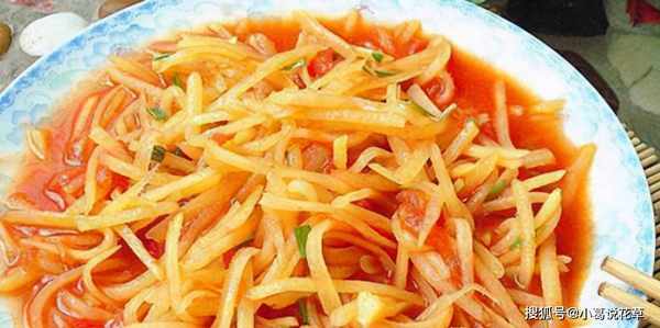 1.土豆去皮切丝,放进凉水里浸泡去掉部分淀粉,西红柿去皮切丁。