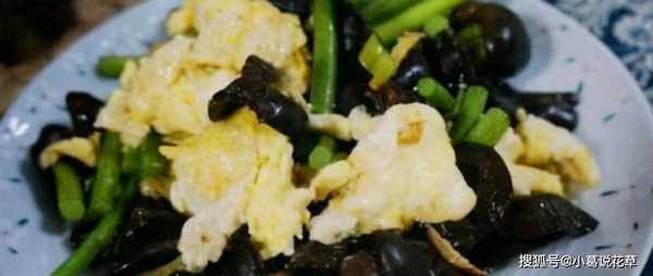 食材:蒜薹,木耳,鸡蛋,盐,葱姜