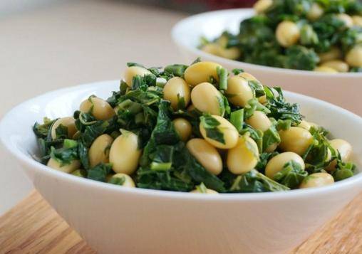 3.黄豆在小锅里煮熟,捞出自然冷却4.中音洗净后,焯水,过凉水沥干多余的水份