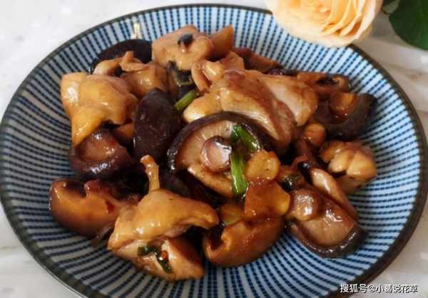 3.鸡块煮熟后加入香菇继续翻炒;最后加入盐,炒匀即可食用。