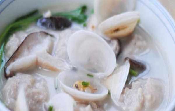 5.加水烧开,加入蛤蜊和香菇烧开,用勺子把切好的鱼块挖到汤里煮至熟,然后加盐