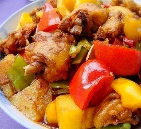 2.锅中油烧热,放入蒜苗炒至表面起皱,取出土豆片炸至表面变黄,取出鸡腿,炒至鸡腿半熟,加入大蒜切片和干辣椒一起搅拌。