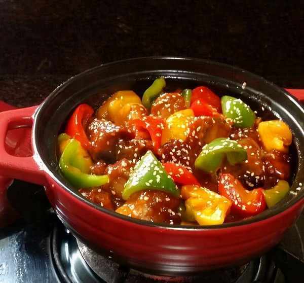 11.糖用一碗半水化开,倒入番茄酱和醋调到你想要的酸甜度。将调好的酱汁倒入锅中,煮至汤变成美丽的橙色。