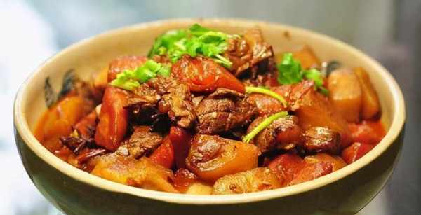 4、一个小时后,加入胡萝卜,继续用文火炖至汤汁浓稠,胡萝卜变软,胡萝卜烤熟,羊肉即可出锅。不要完全沥干最后的汤。