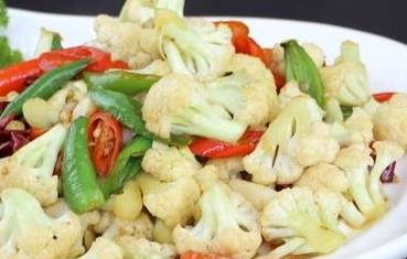 菜花的营养比一般蔬菜丰富。它含有蛋白质、脂肪、碳水化合物、食物纤维、维生素A、B、C、E、P、U和钙、磷、铁等矿物质。菜花质地细嫩,味甘鲜美,食后极易消化吸收,其嫩茎纤维,烹炒后柔嫩可口,适宜于中老年人、小孩和脾胃虚弱、消化功能不强者食用。尤其在暑热之际,口干渴、小便呈金黄色,大便硬实或不畅通时,用菜花30克煎汤,频频饮服,有清热解渴,利尿通便之功效。