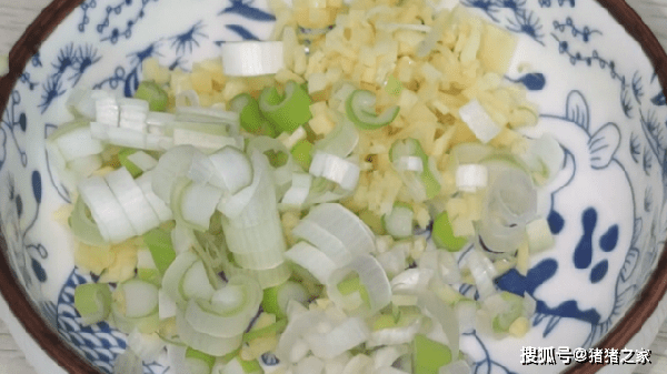 2.半根大葱切成葱花;生姜先切姜末;多一点的大蒜先用刀拍一下,然后剁成蒜末;二荆条椒切小圈;小米椒也切成圈,不喜欢吃辣的也可以不用放;小葱切葱段。