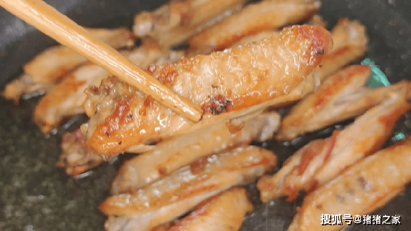4.准备一个平底锅,用刚刚炒蒜的油来煎鸡翅,把腌好的鸡翅放进来,开小火慢慢煎,煎至鸡翅一面金黄后,翻一面,一定要开小火慢慢煎,这样才能把鸡翅煎熟煎透,煎成两面金黄就可以盛出来放入盘中。