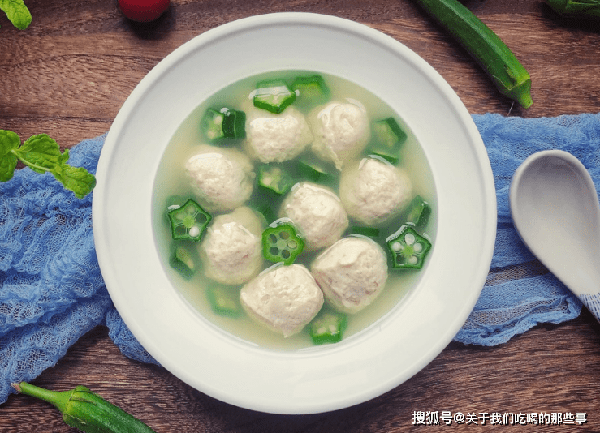 2、锅里加水烧开,把肉泥放在手心,从虎口挤出来,用勺子舀下放入锅中煮一会儿,全部漂起来后捞出,放入碗中。秋葵洗干净去蒂,切成小片,锅里加水,放入秋葵、鸡肉丸子煮3分钟,淋上香油即可出锅。