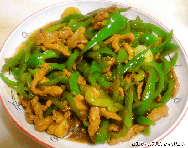 2、起锅烧油,倒入腌好的肉丝,小火滑炒至变色后盛出。锅里留底油,下入姜蒜末爆香,倒入青椒大火煸炒一会儿,变软断生后加入适量盐、生抽、蚝油、鸡精,倒入肉丝翻炒均匀即可。